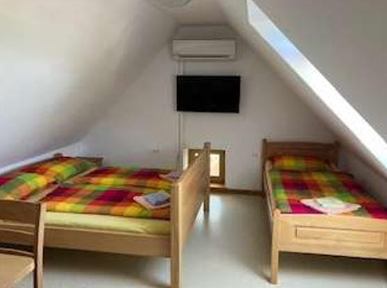 V hiši so urejeni 4 apartmaji, skupni prostori in soba za upravljalca. Na severni strani je k hiši prizidana kurilnica, na zemljišču se nahaja tudi kapelica.