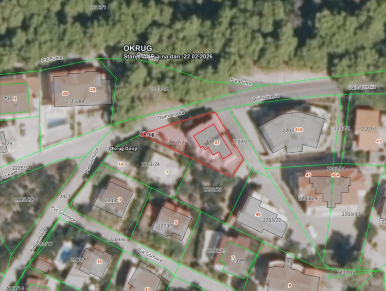 Površina parcel: 130 m2 + 347 m2